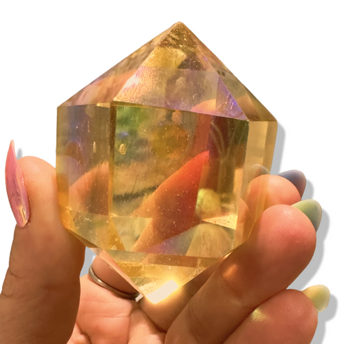 AAA Grade, Double Aura Coated Phantom Chubby Double Terminated Lemonade Aura Quartz, USA