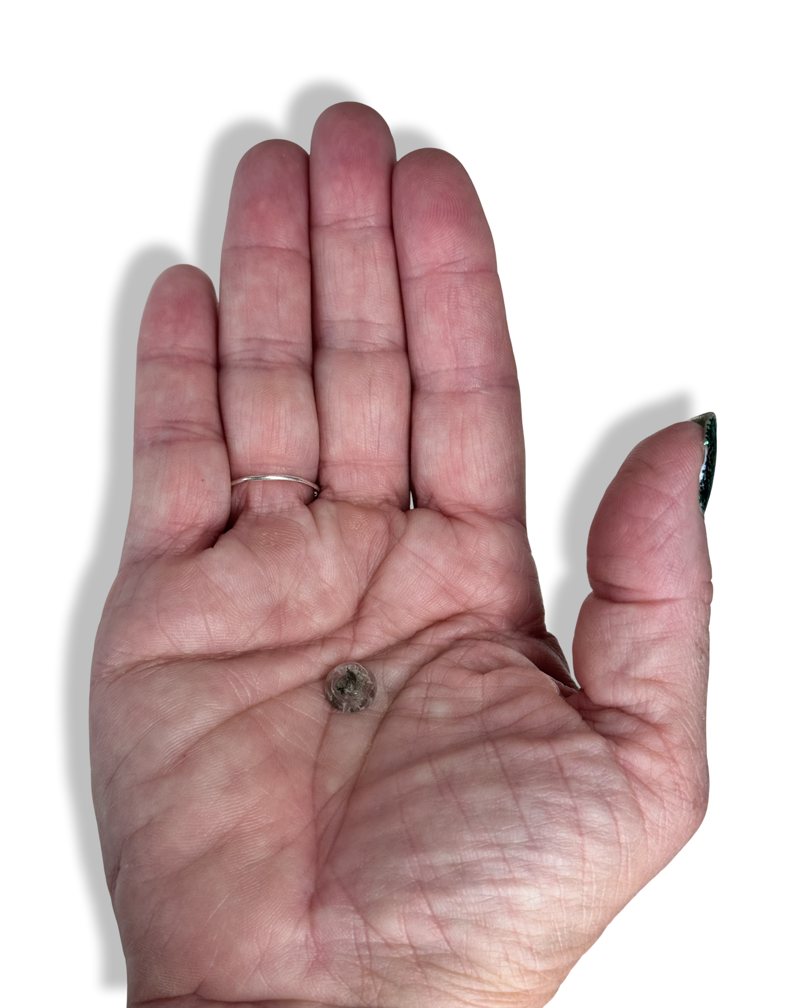 A truly rare combination, sparkling pyrite suns encapsulated in clear quartz, polished for maximum visibility into miniature cabachons. Perfect for unique jewelry making. A recent find from Galileia, Minas Gerais, Brazil.