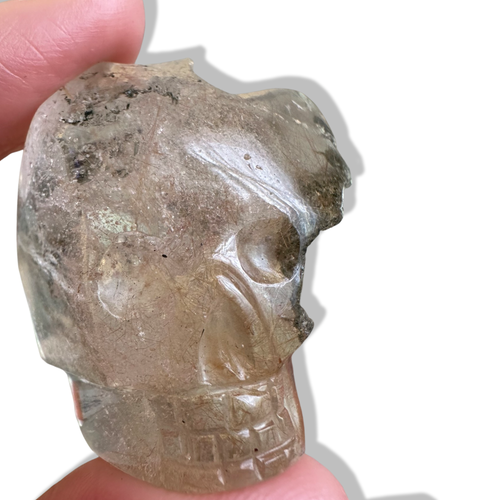 Golden Rutile Chlorite Samādhi Himalayan Quartz Skull, Carved by Subhash, India