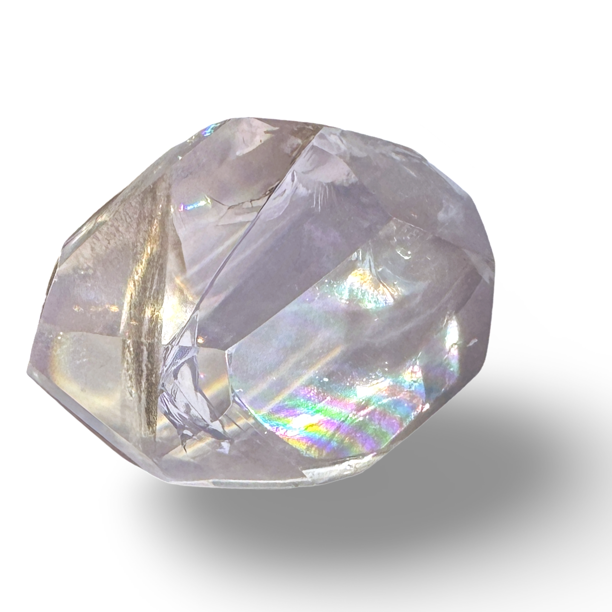 Beautiful clarity rose quartz from Mozambique with vivid rainbows honed into a mesmerizing free form.
