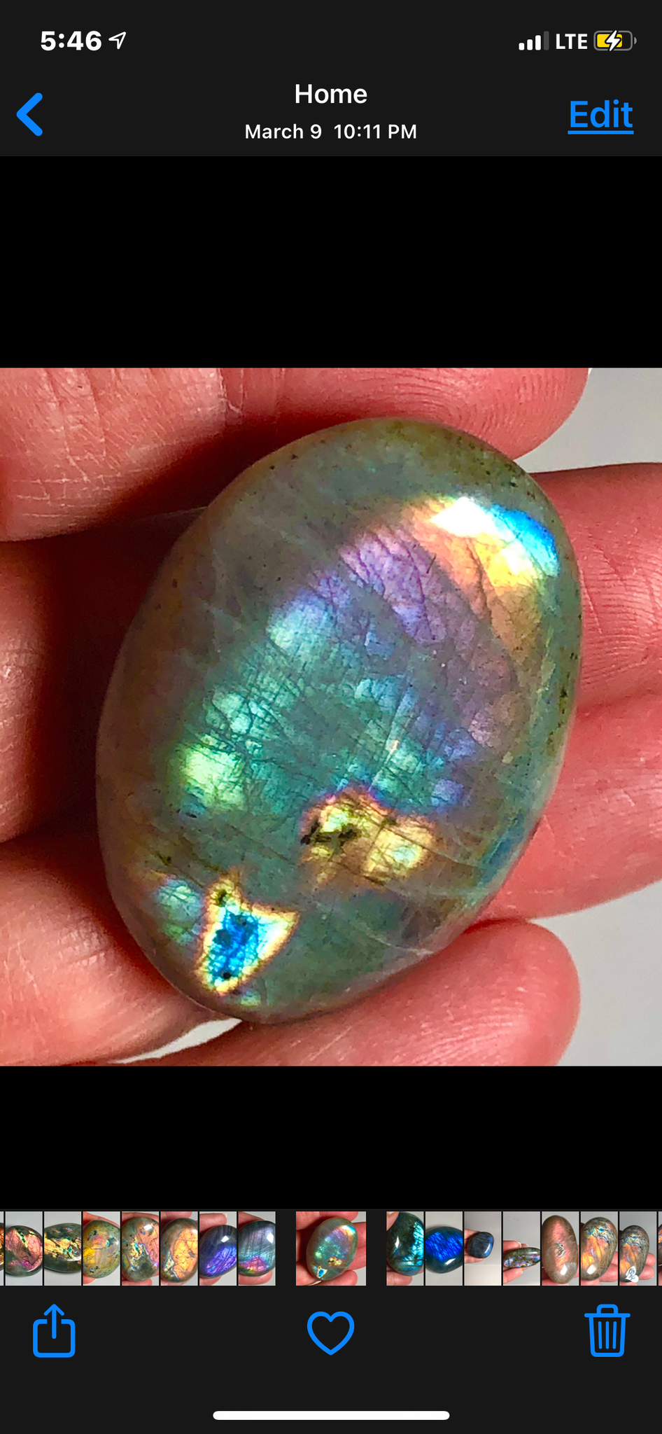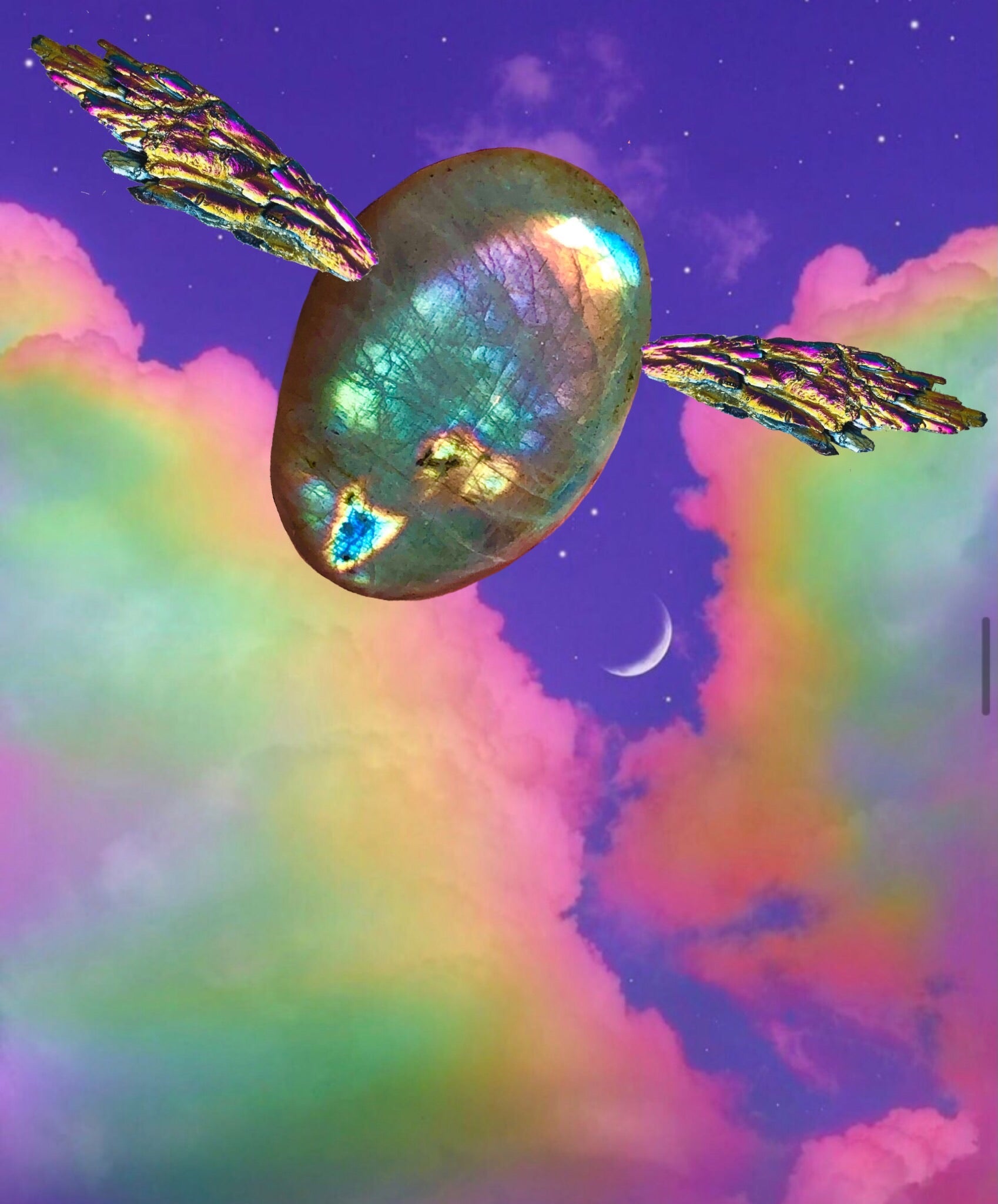 Madagascar rainbow labradorite with dual flash and a complete gradation rainbow. Used in the art work ‘Gilded Snitch’